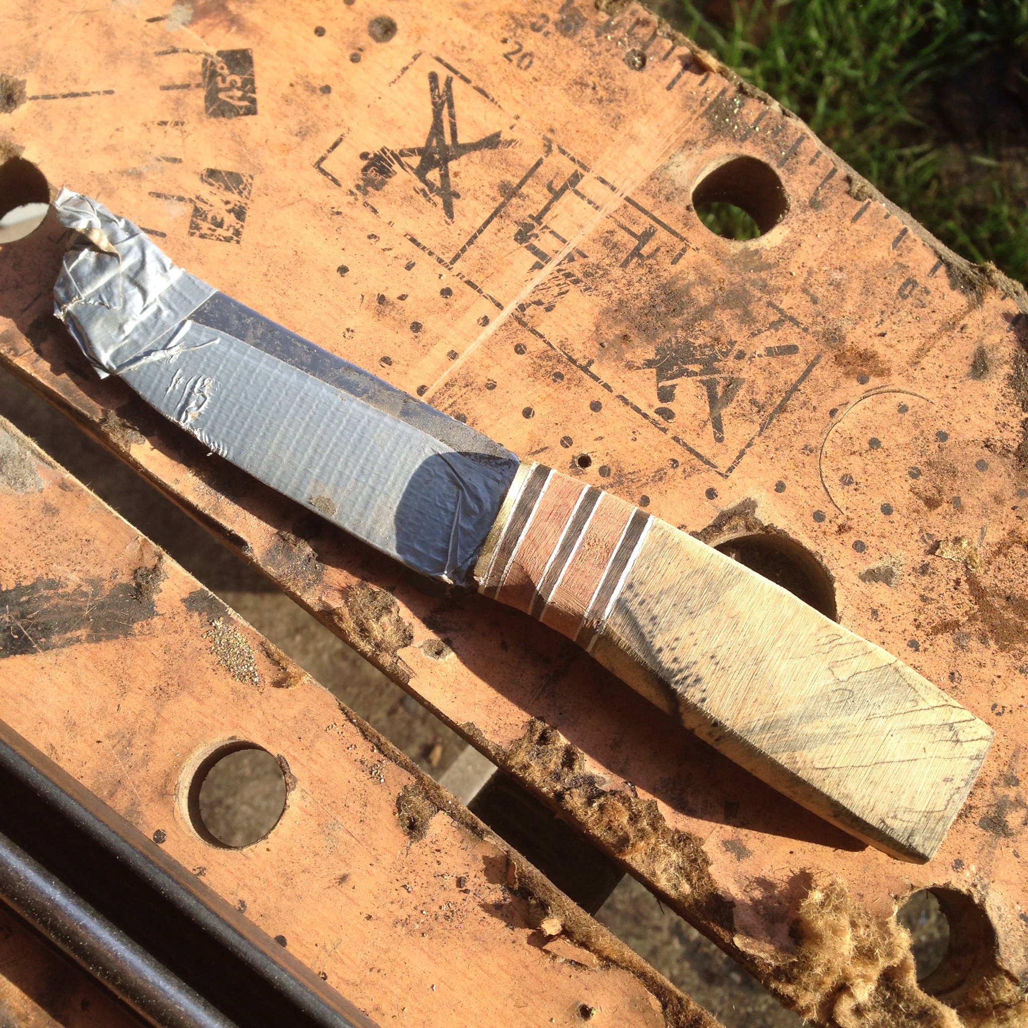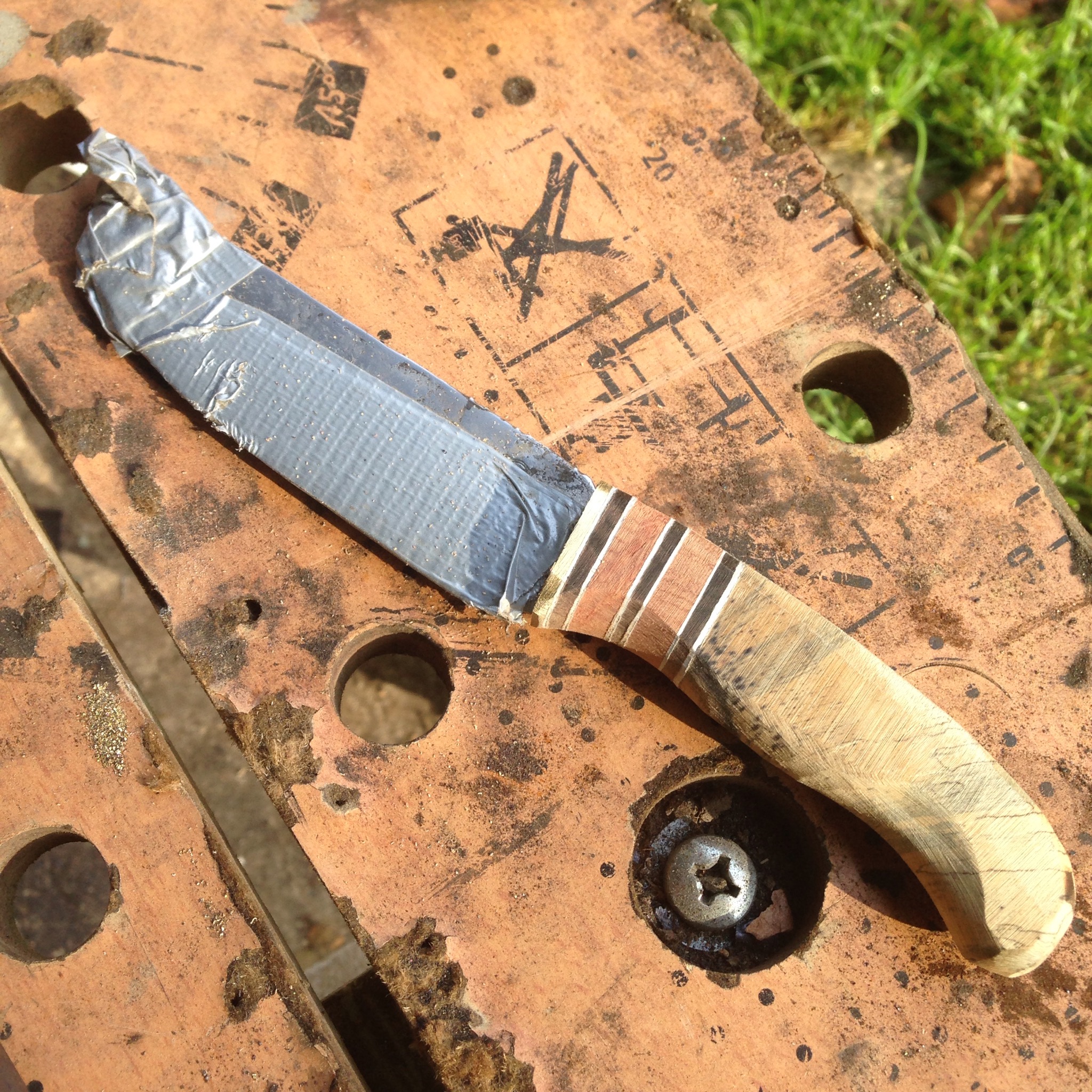 Lame en xc75 de 10cm et longueur totale de 21cm deux ébène : du Mali et du Laos avec loupe d’amboine