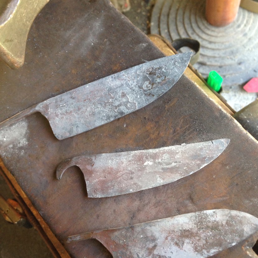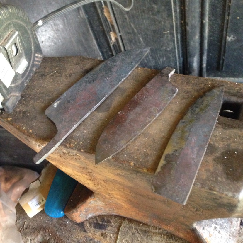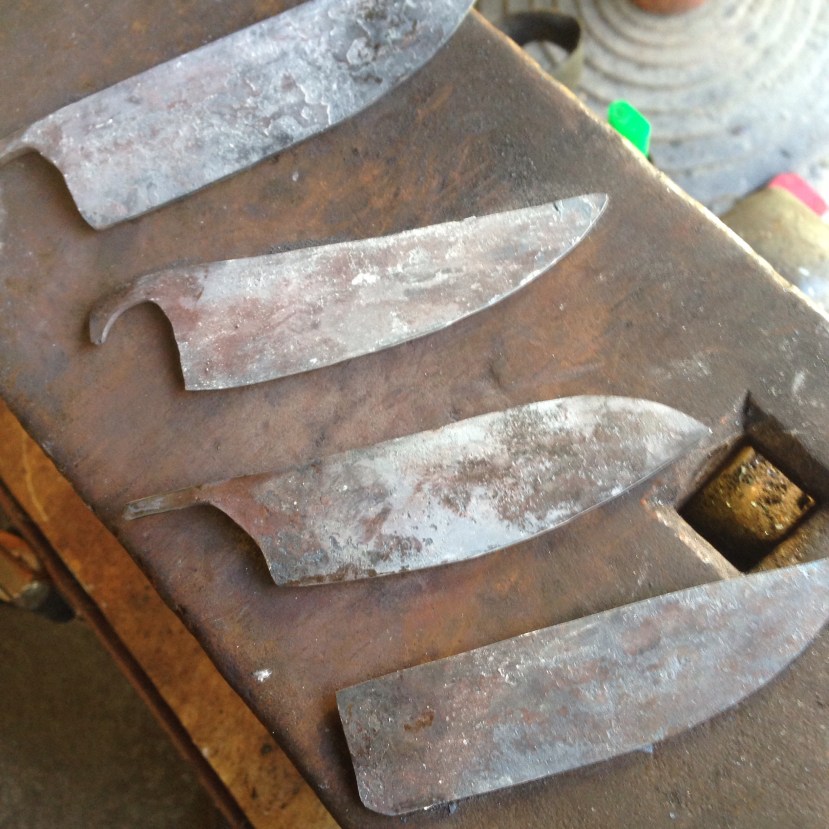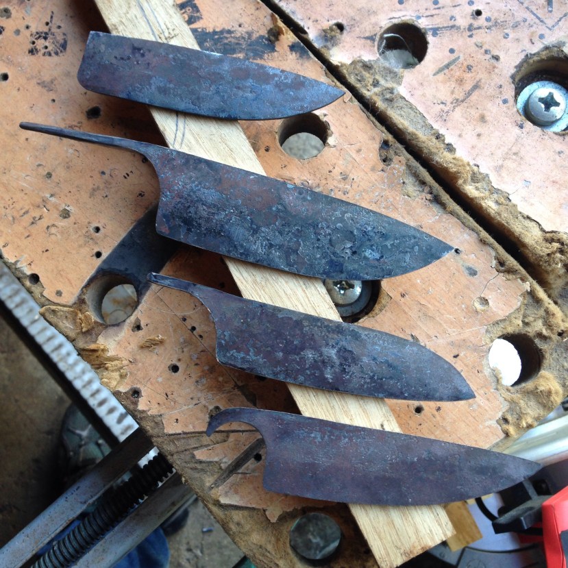 J’ai décidé de rallumer la forge ce matin de faire quatre lame de pliant toutes bien différentes