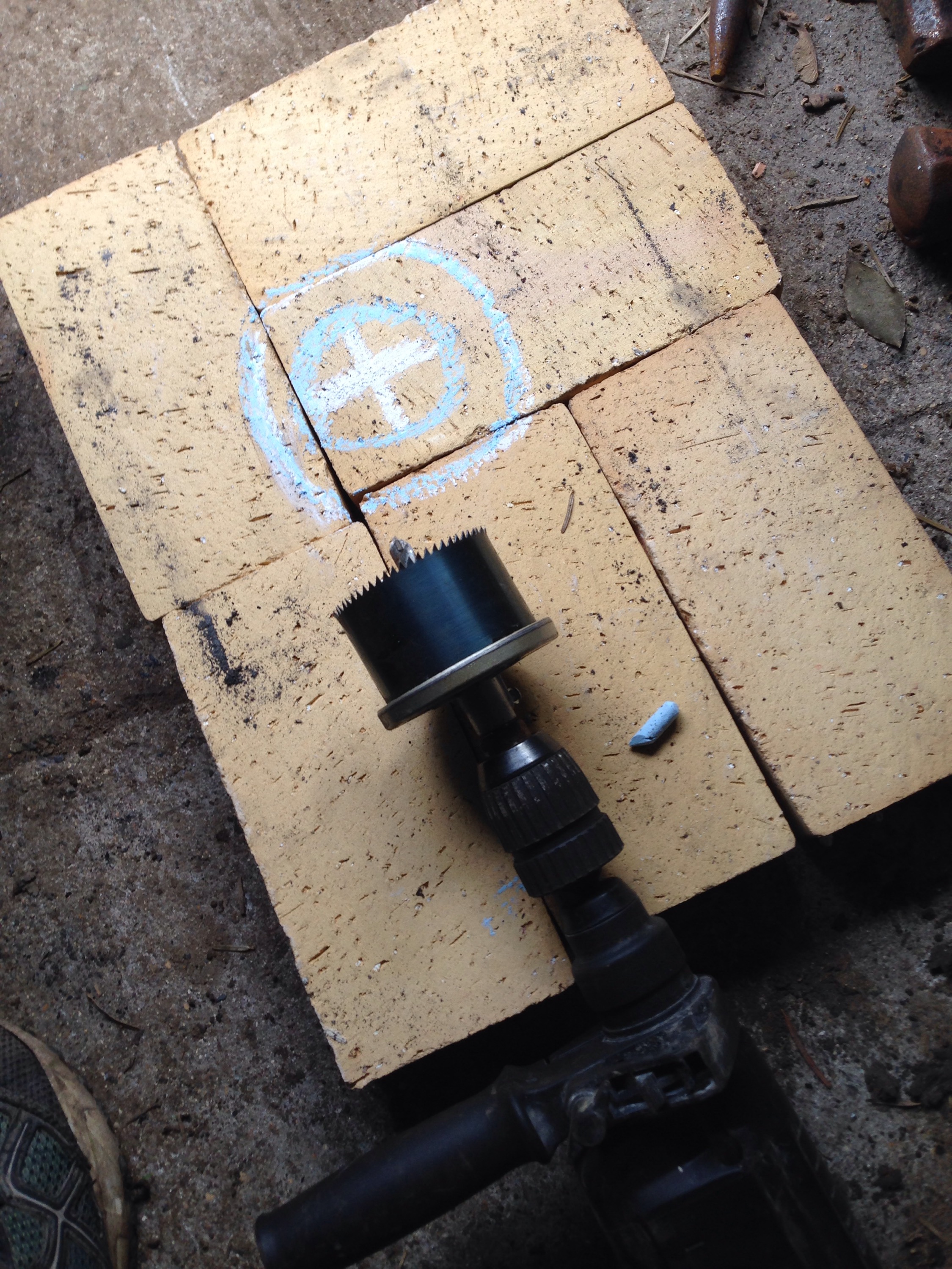 Tentative avec ma pauvre scie cloche …. Bof bof du coup le foyer sera pyramidale
