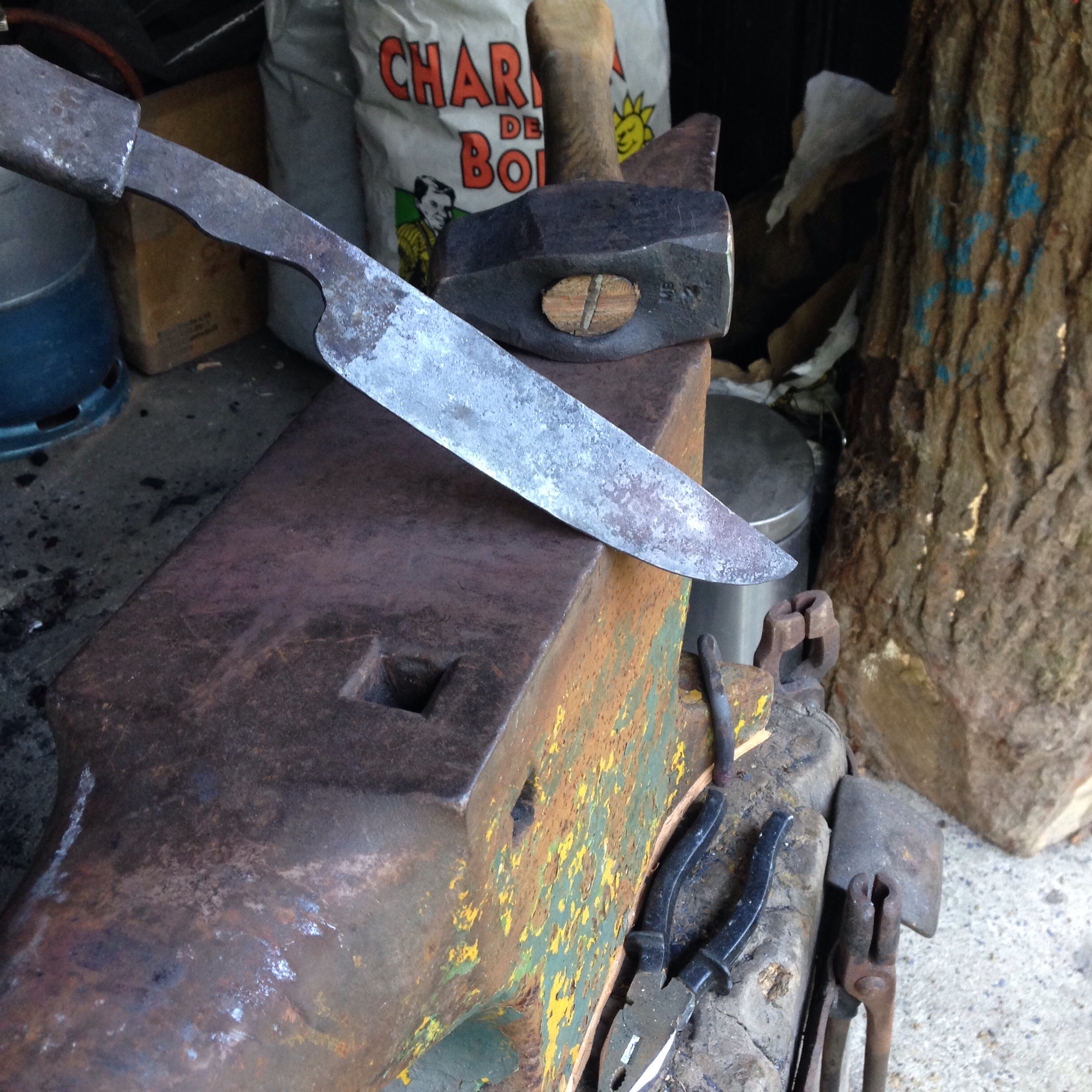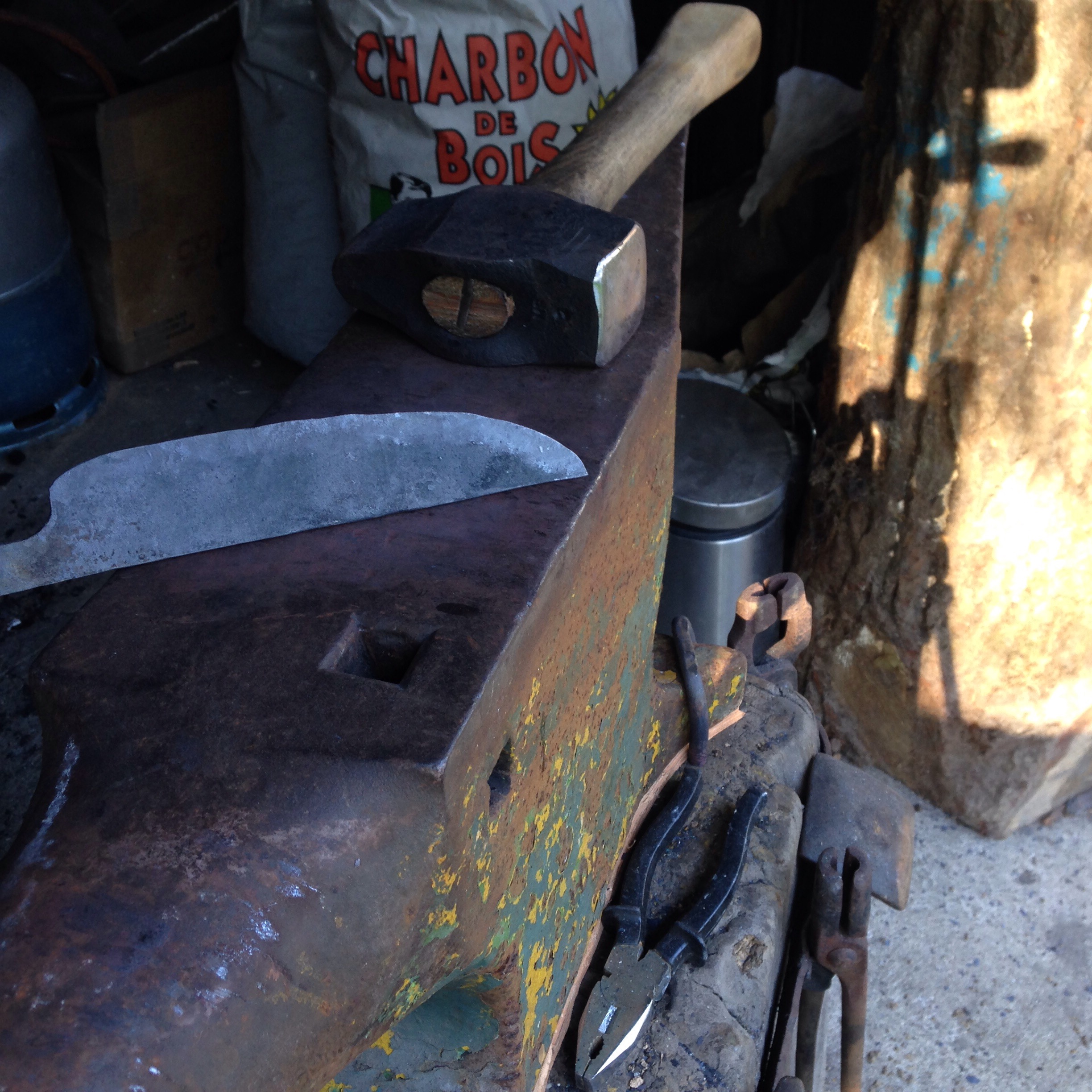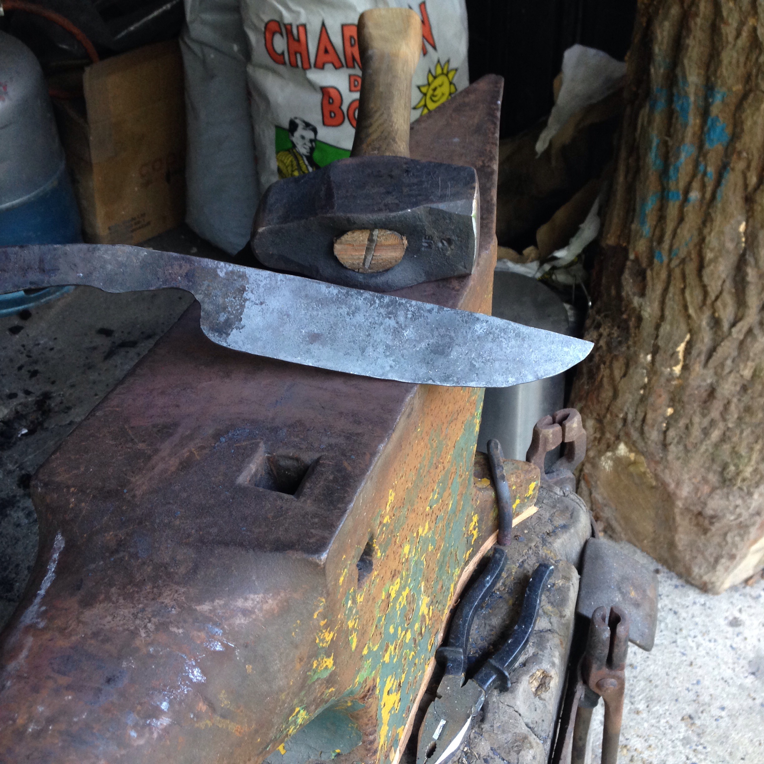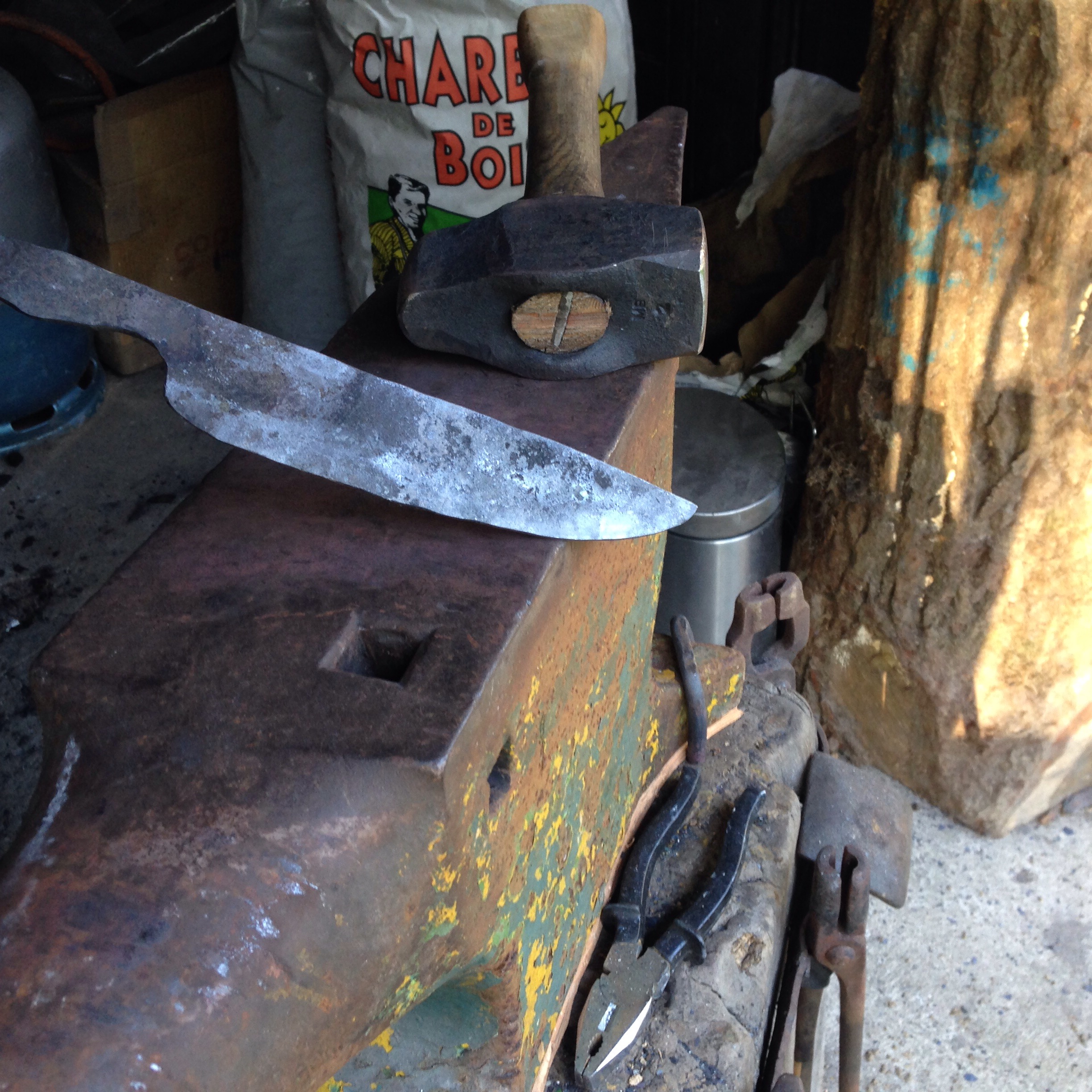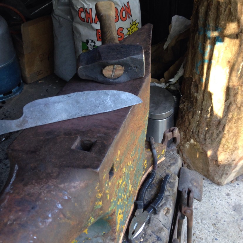 Ce matin j’ai emouturé mon gros couteau au marteau (tout reste relatif…)