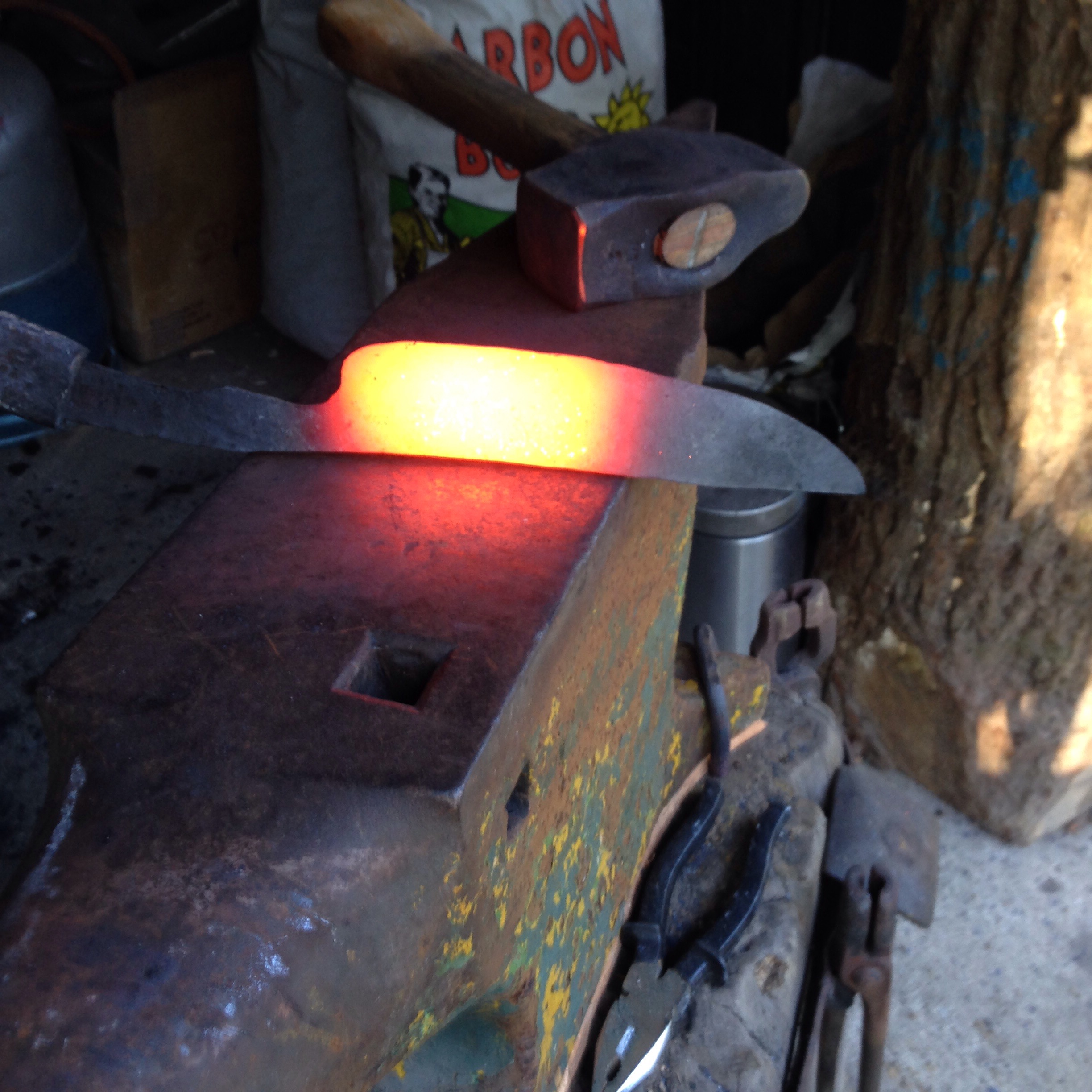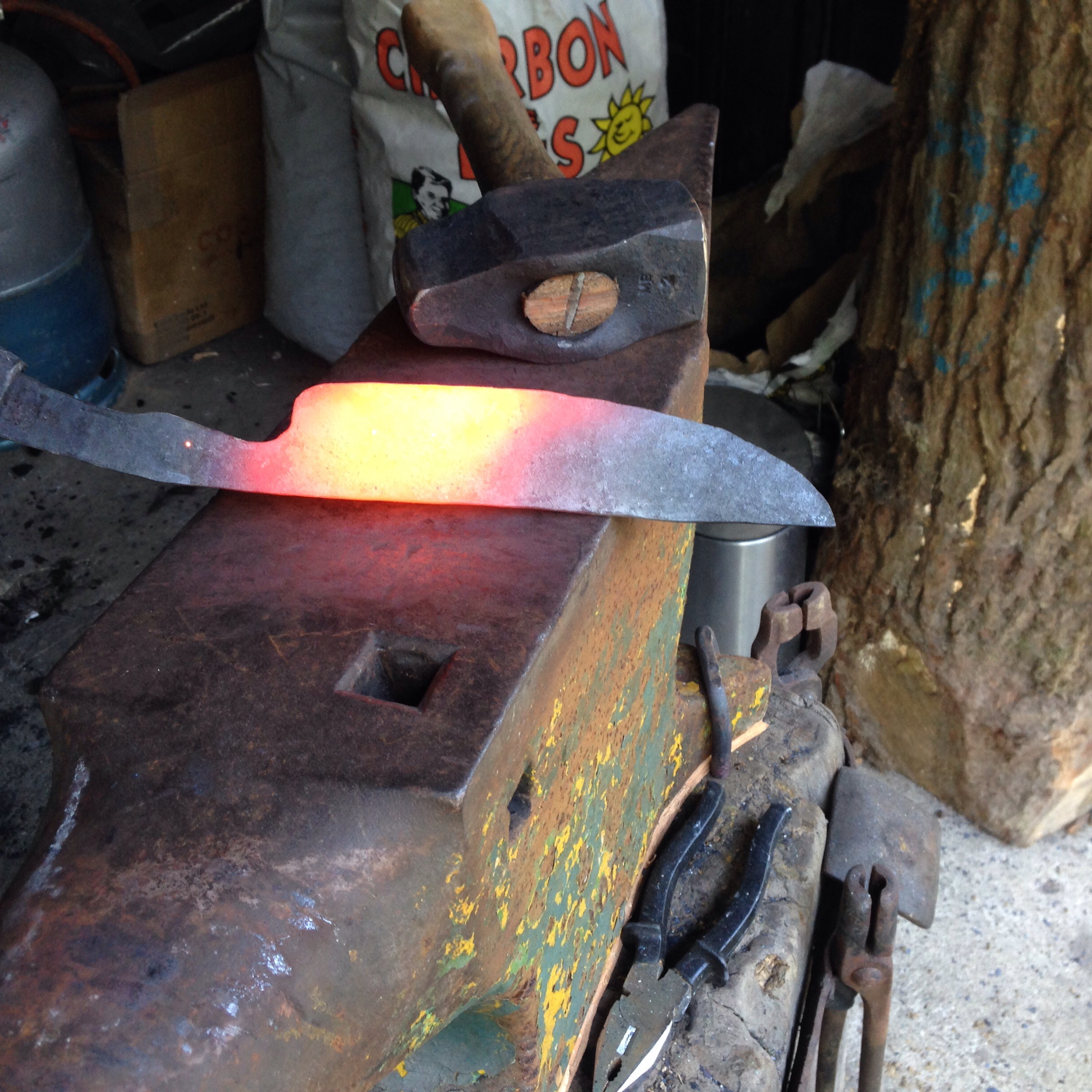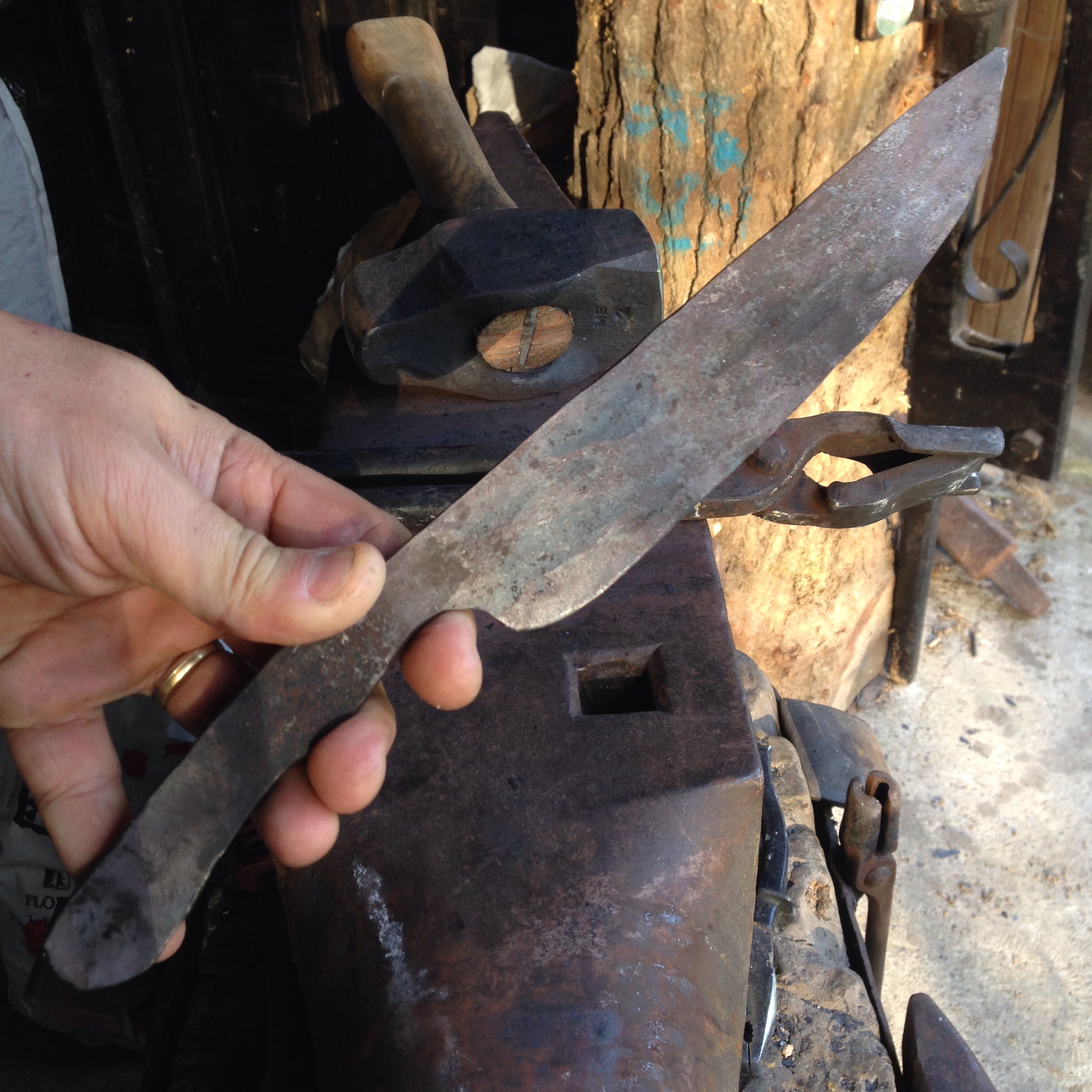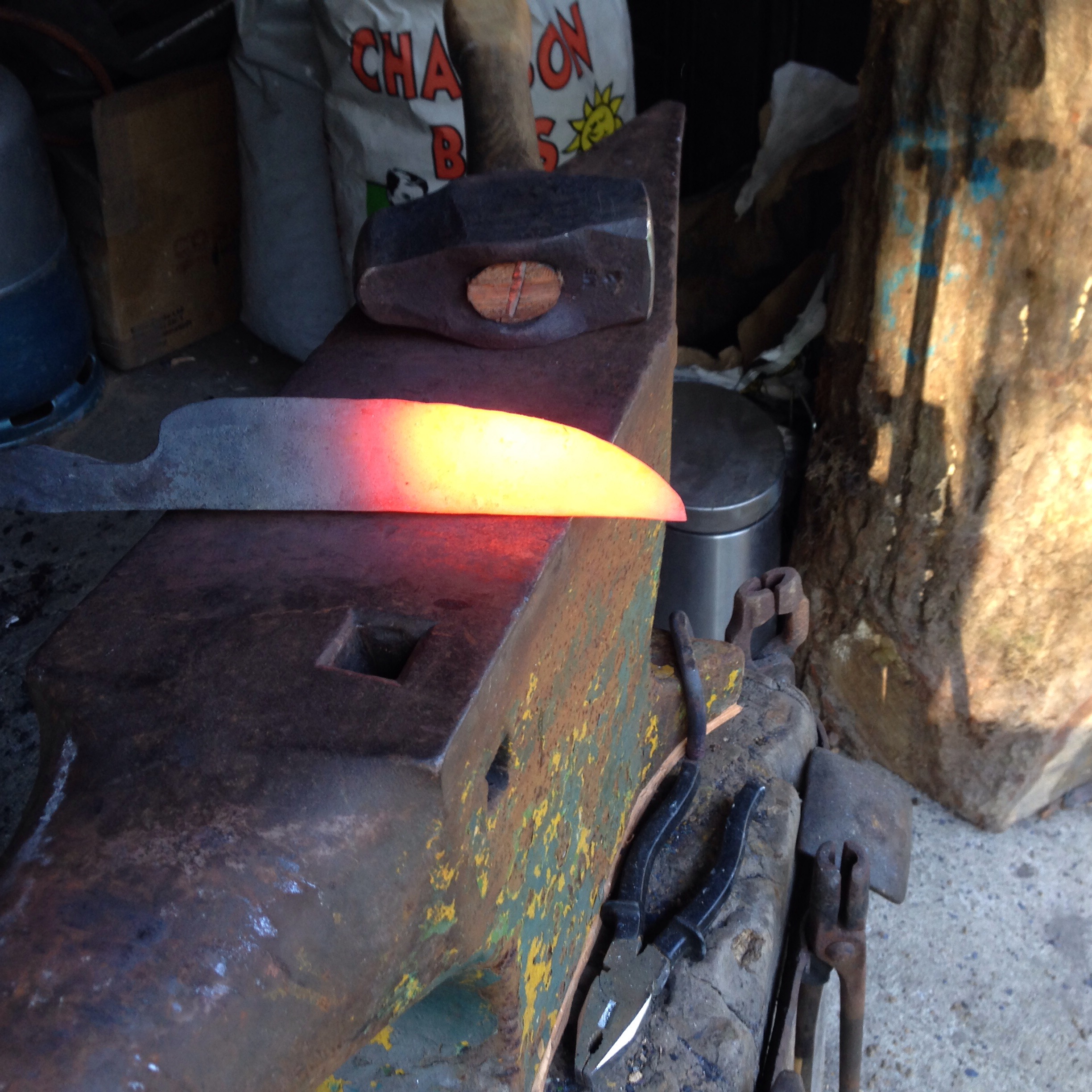 Ce matin j’ai emouturé mon gros couteau au marteau (tout reste relatif…)