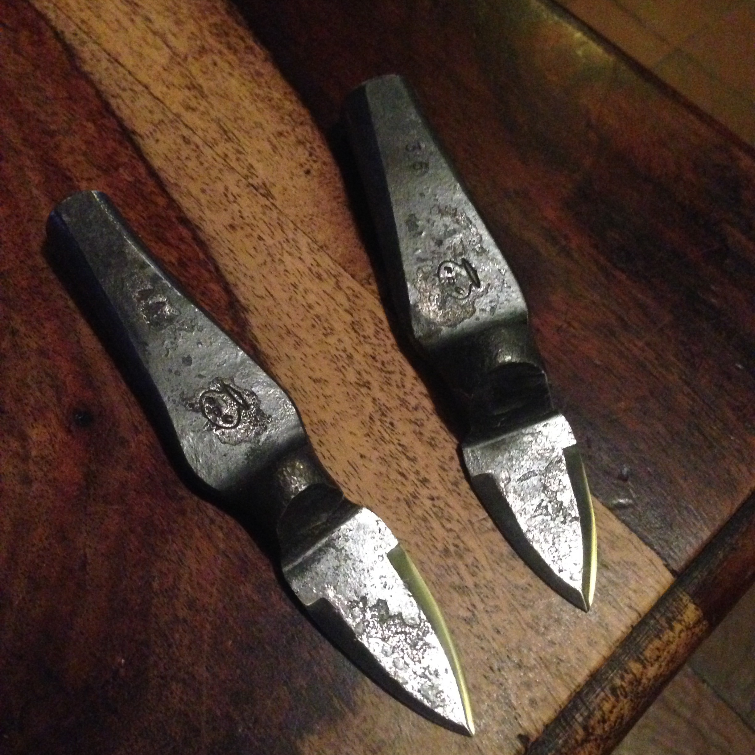 Mais ceux ci ne seront pas pour protéger le tranchant… Mais pour habiller ces deux couteaux à huître … Made in forge de caractère bien entendu…