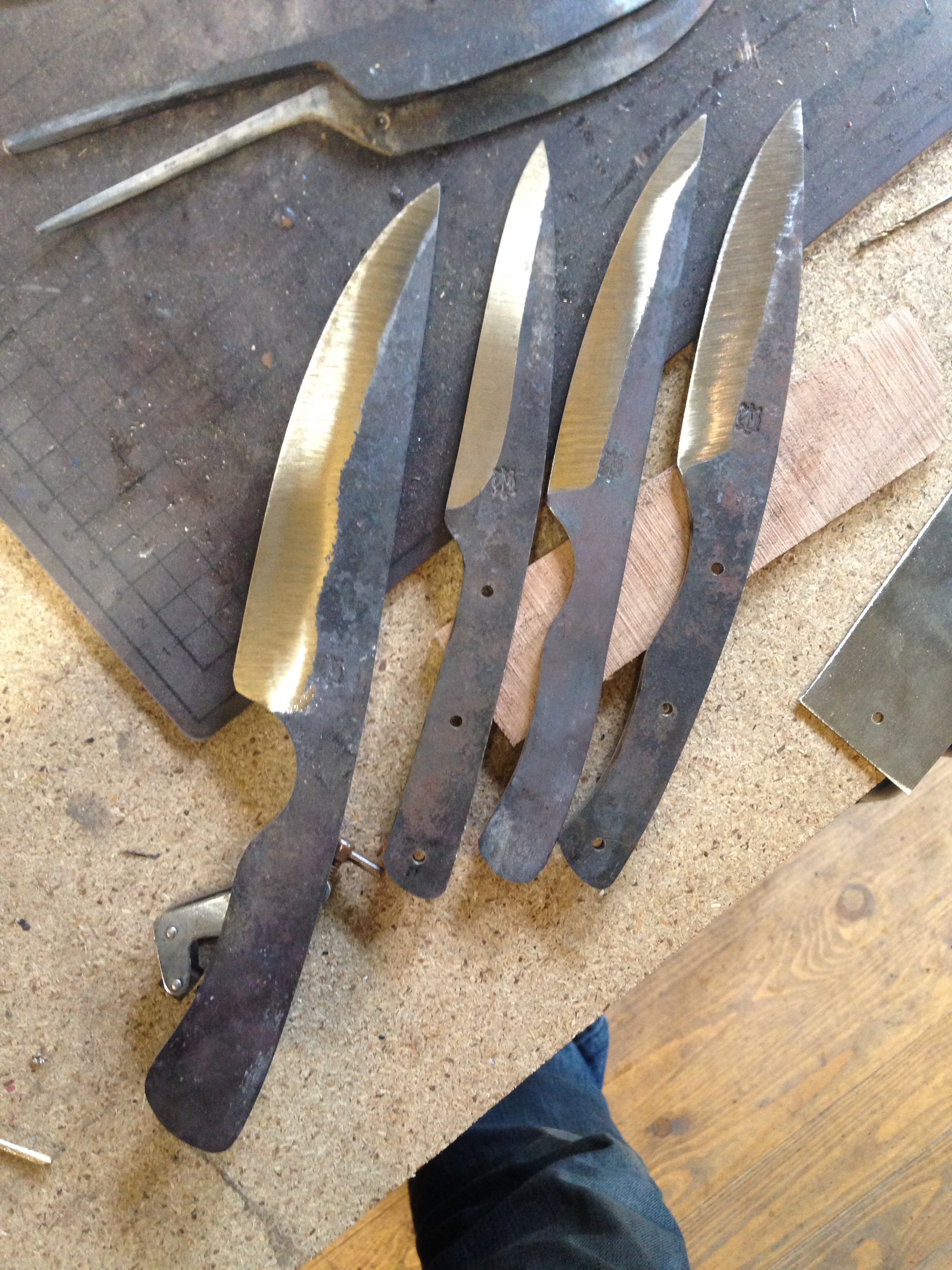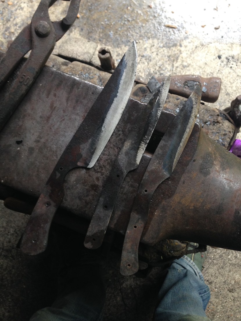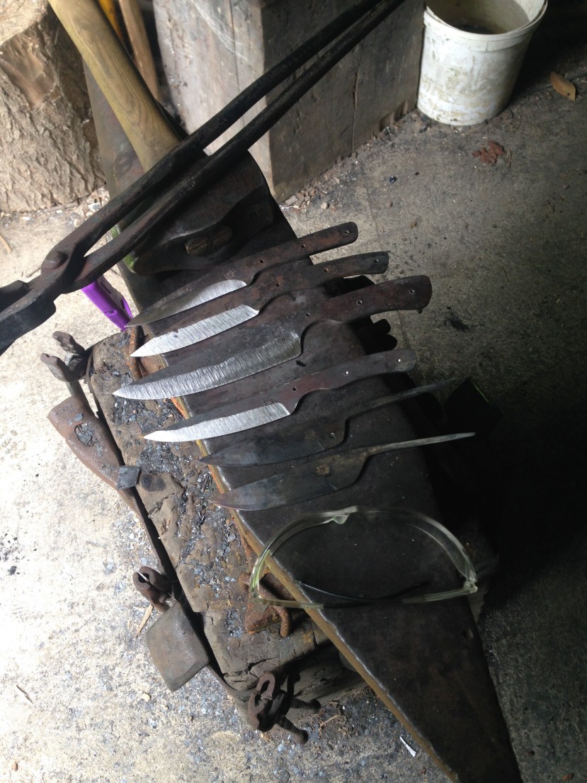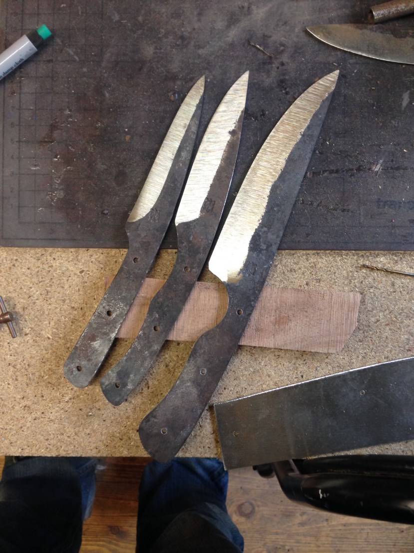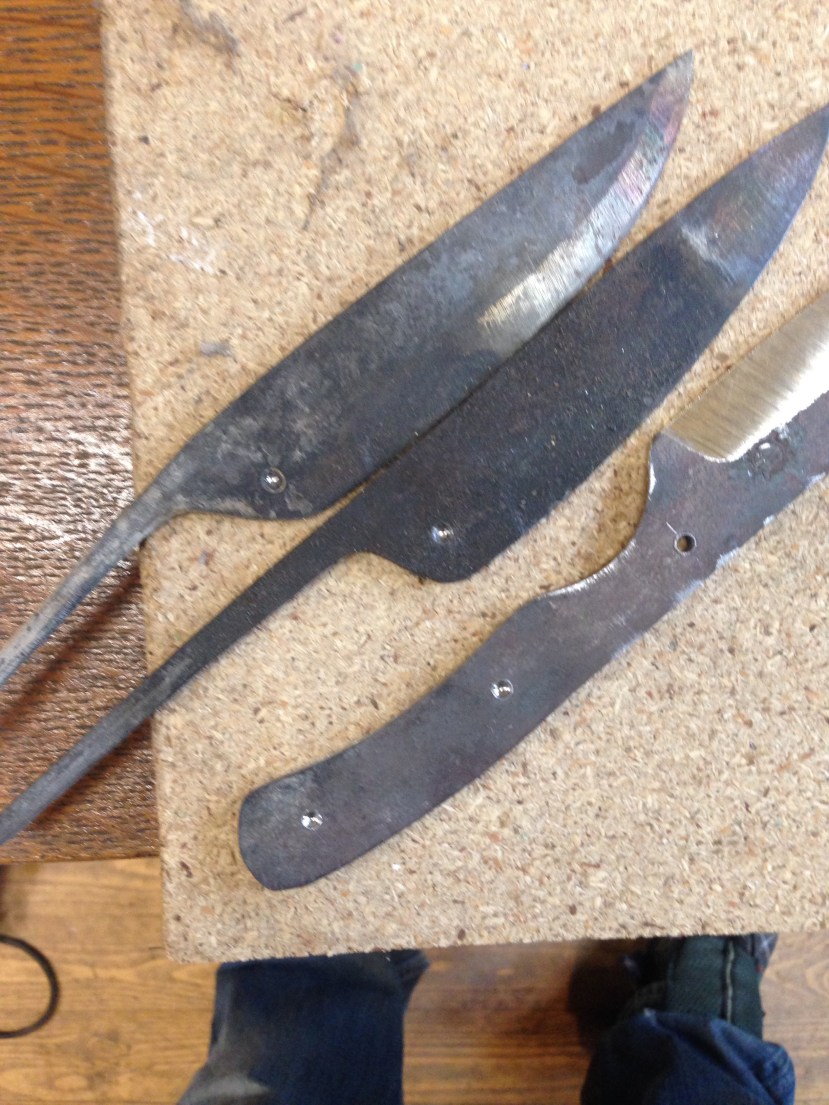 Et cette après midi j’ai donc attaqué par le recuit des trois lames récalcitrantes … Puis j’ai attaqué la trempalo des trois autres .