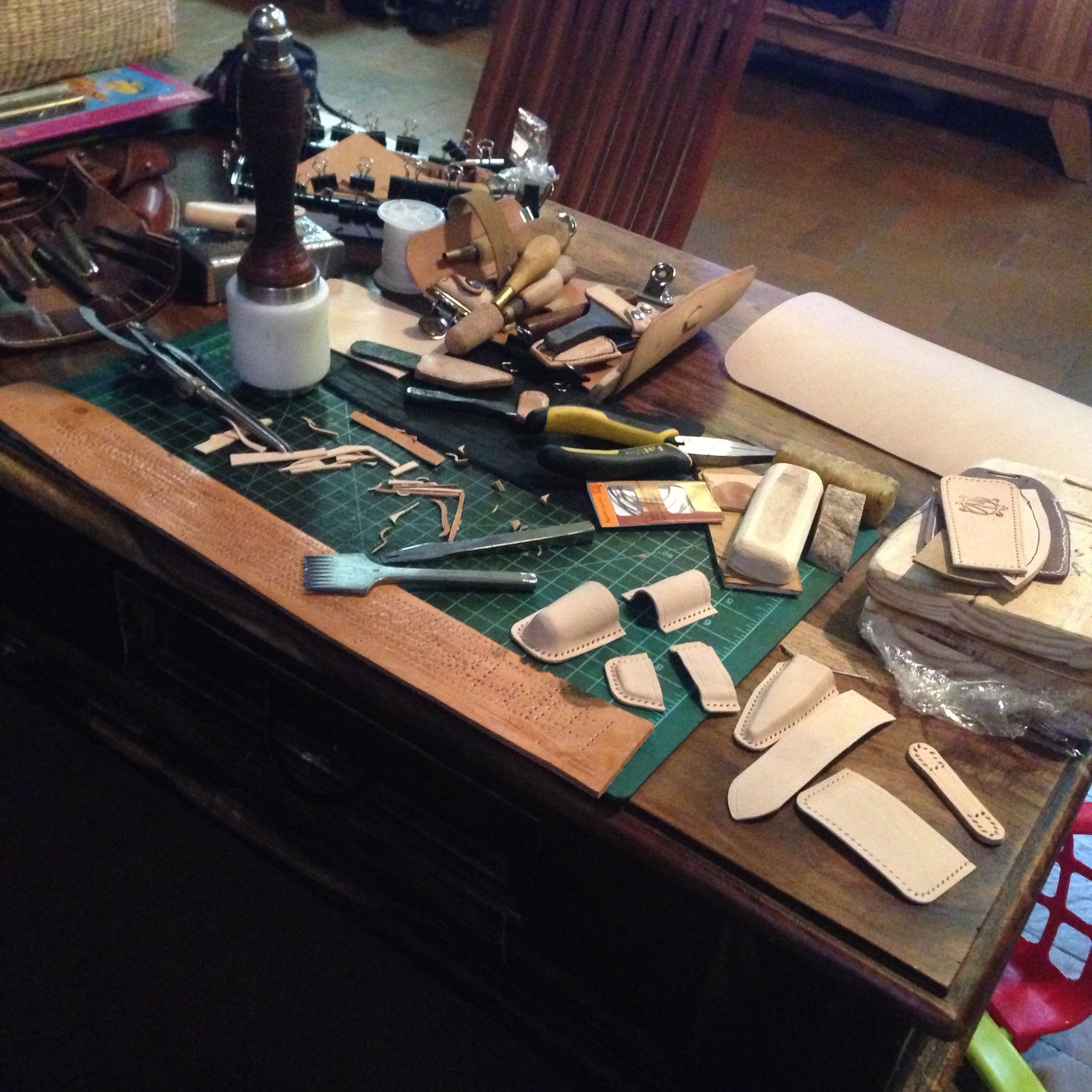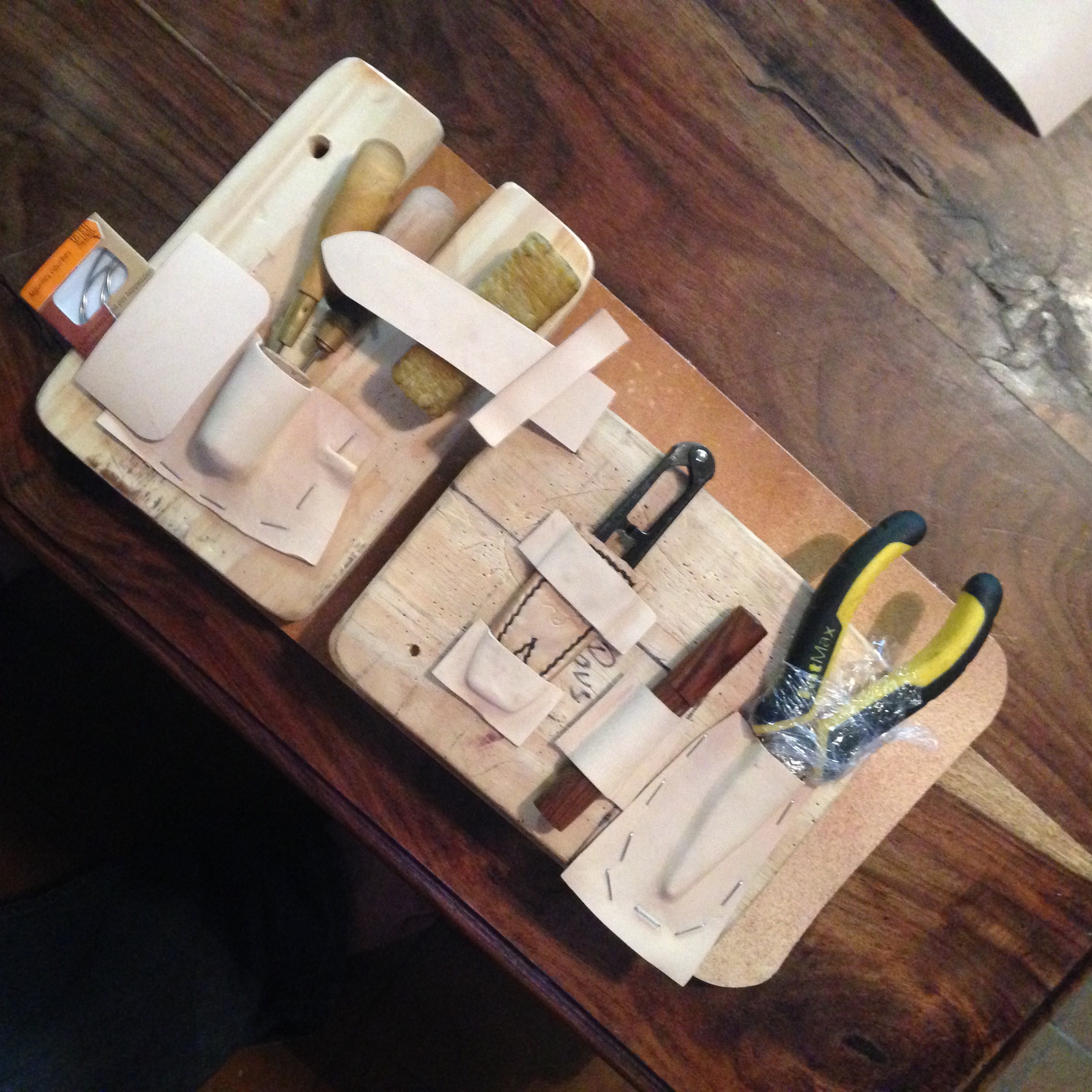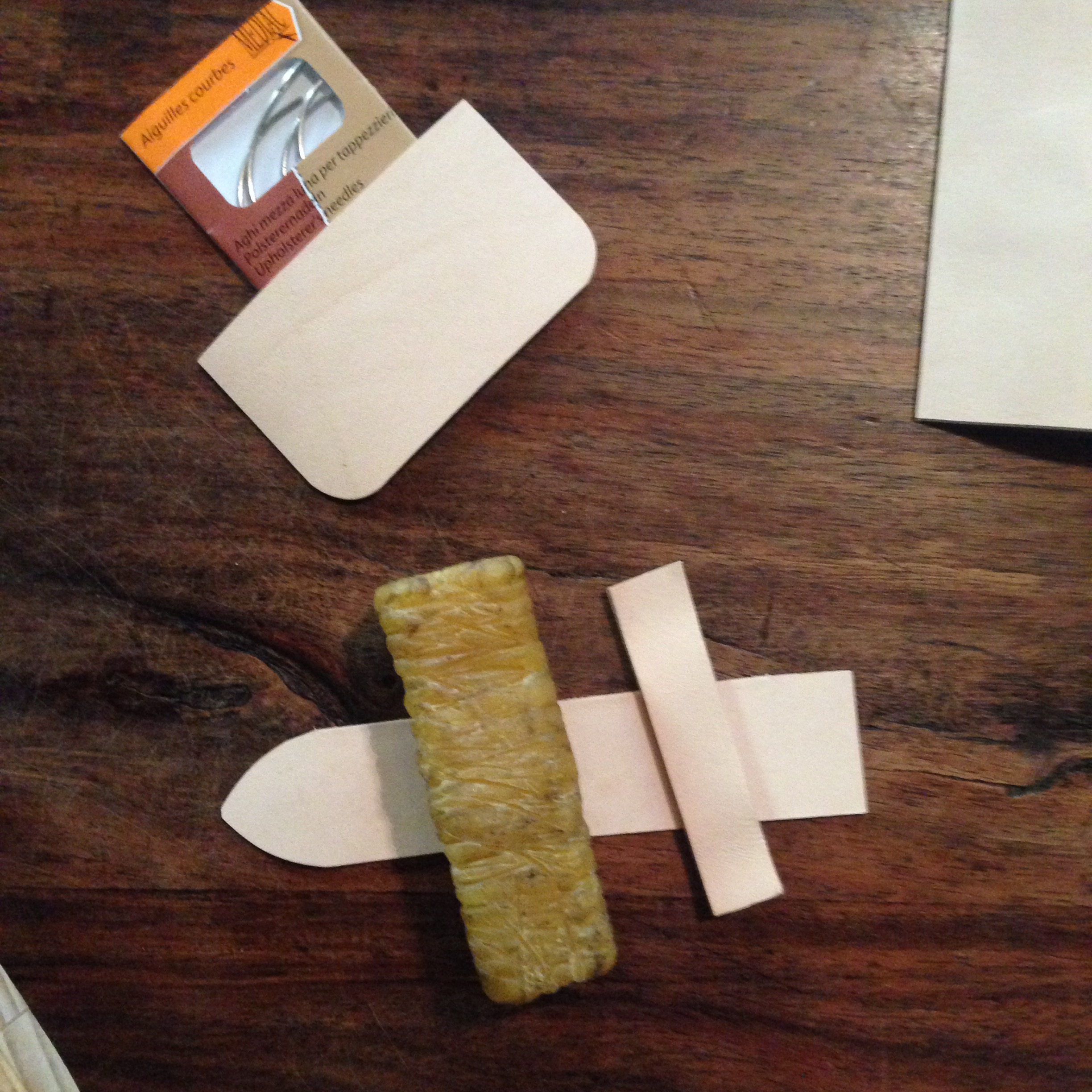 On va donc se faire un beau petiot set de sellier histoire d’avoir tout sous la main… Aiguilles, alênes, pince, cire, ciseaux, aiguilles courbes.