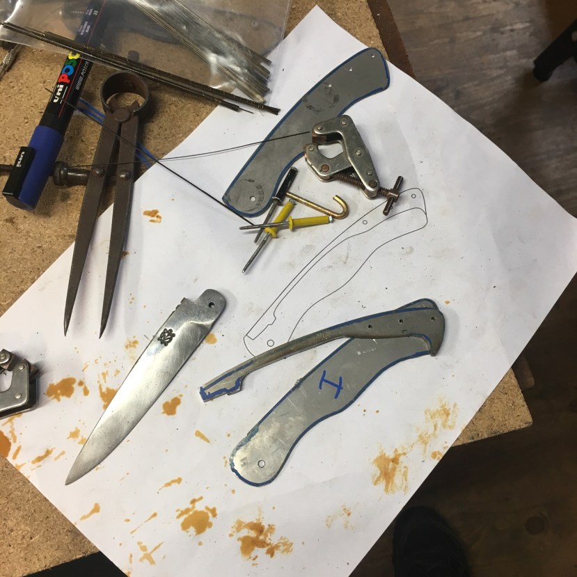 Première tentative de ressort pour ce futur couteau pliant