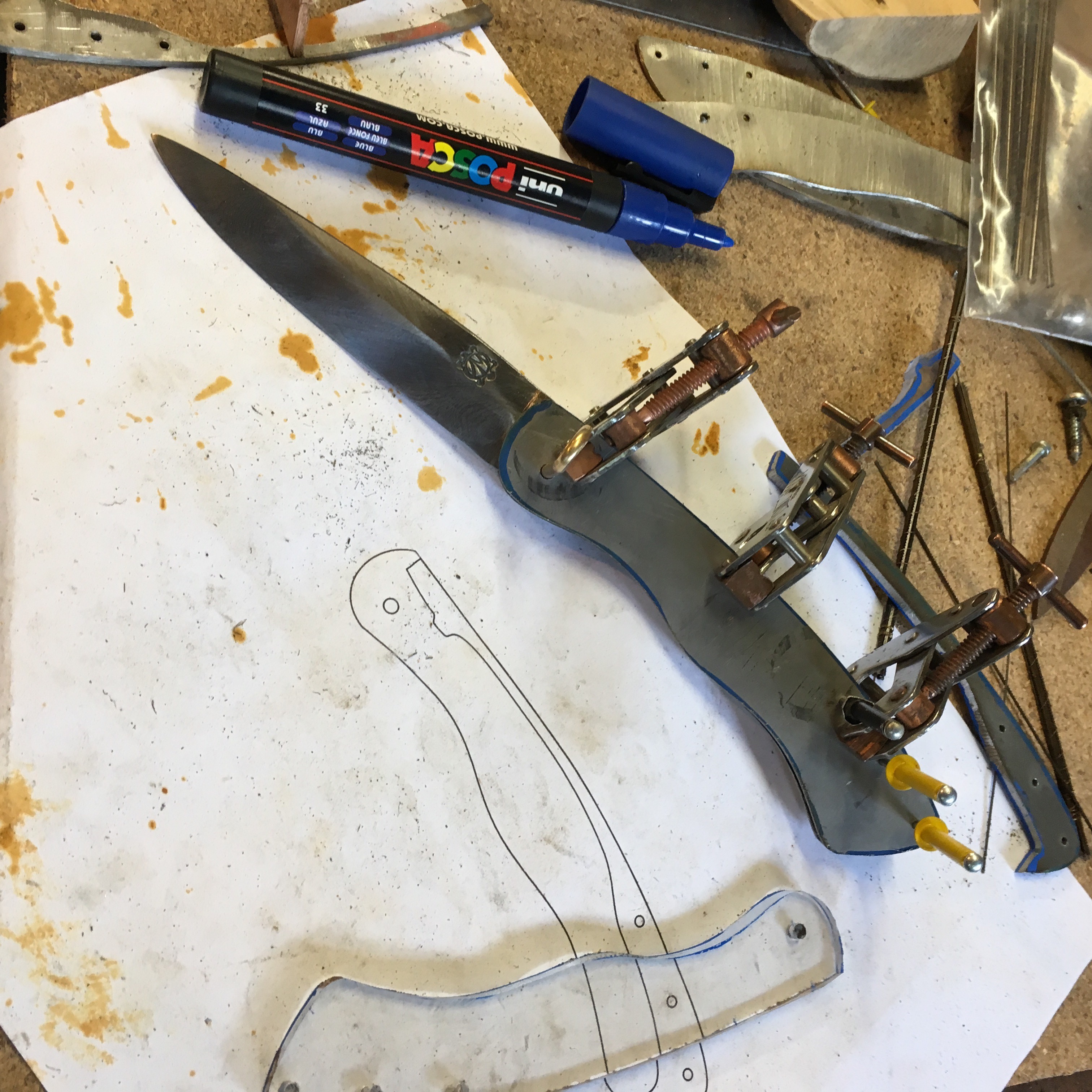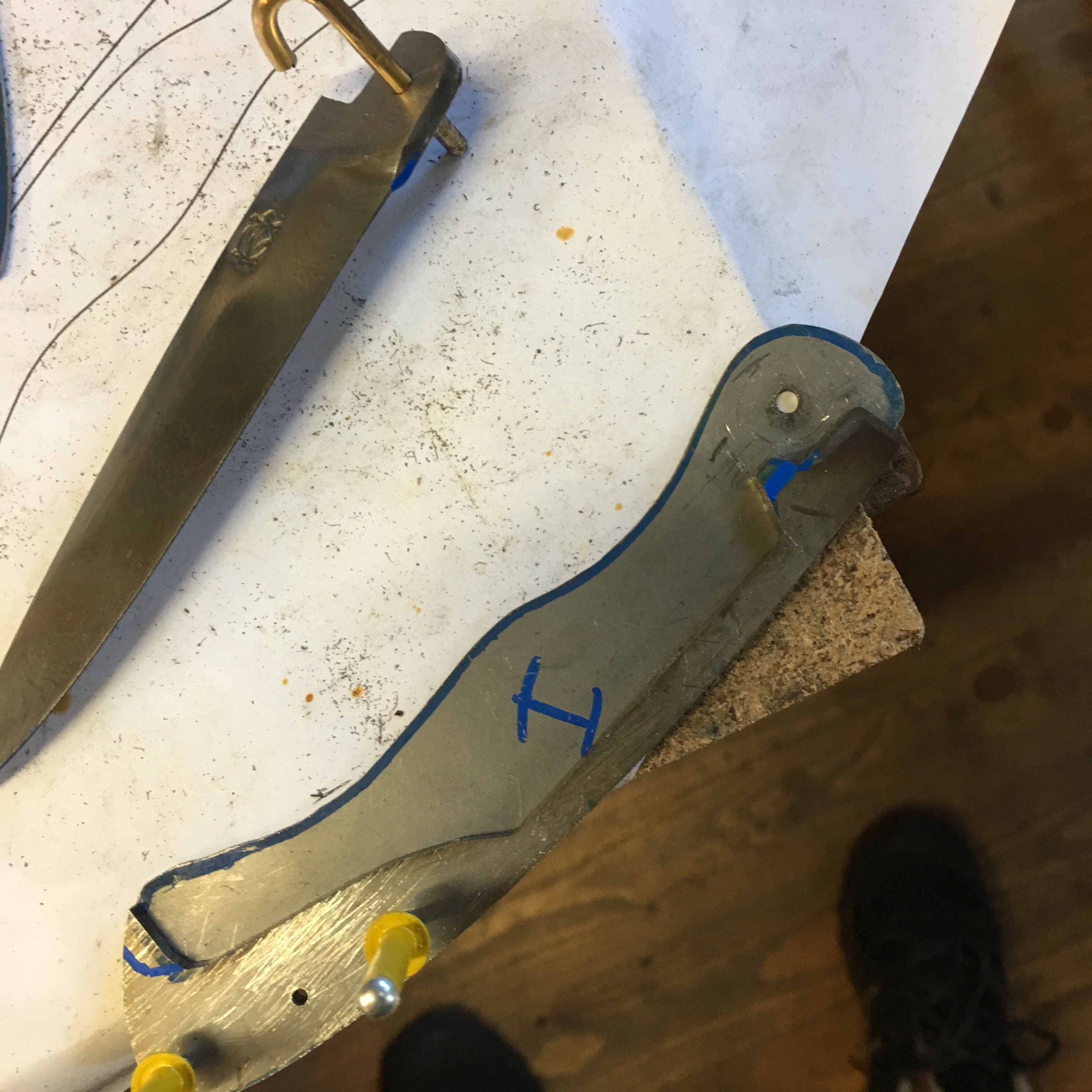 Première tentative de ressort pour ce futur couteau pliant