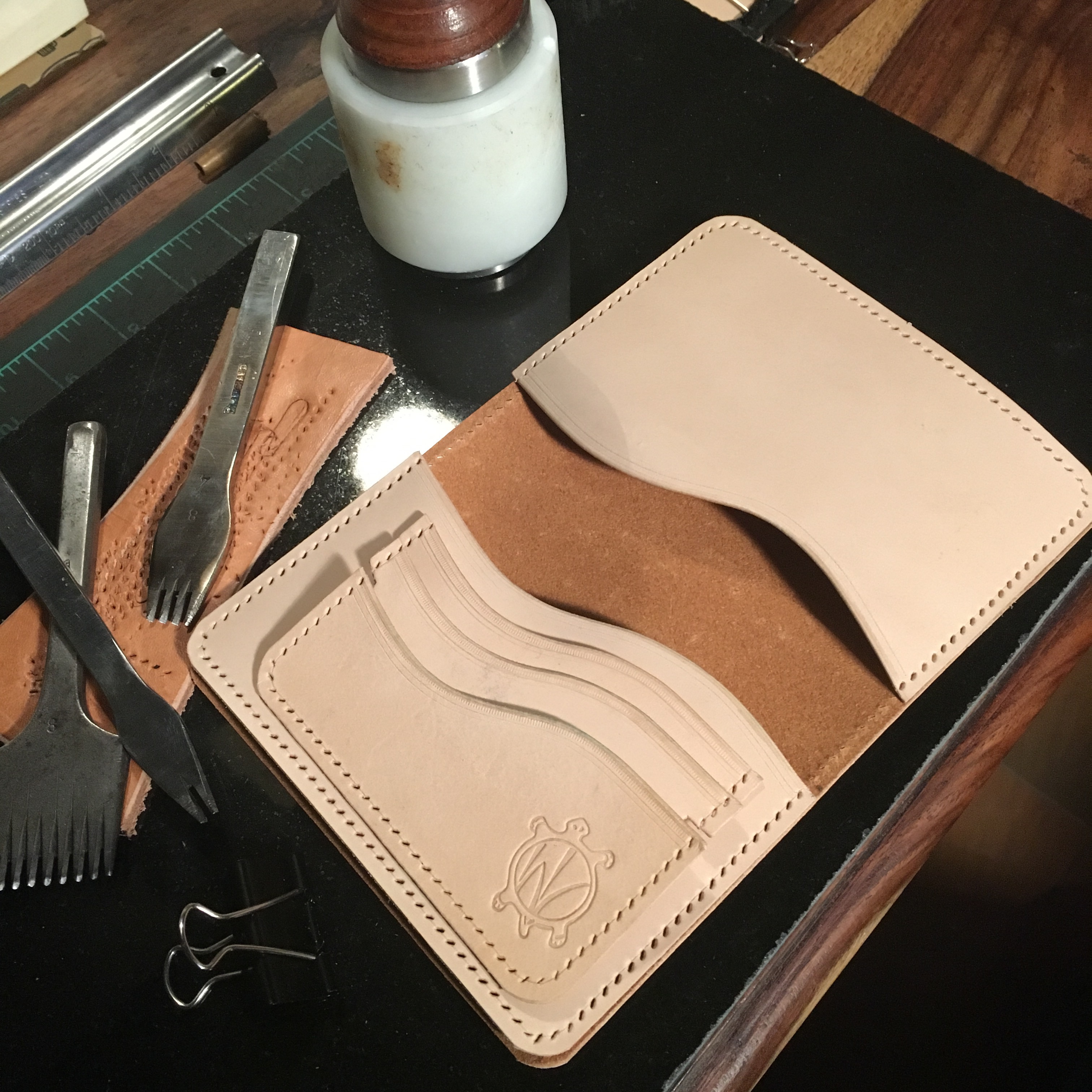 Tagué:atelier cuir, leatherworks, porte carte, RF tortue, RF turtle, wallet