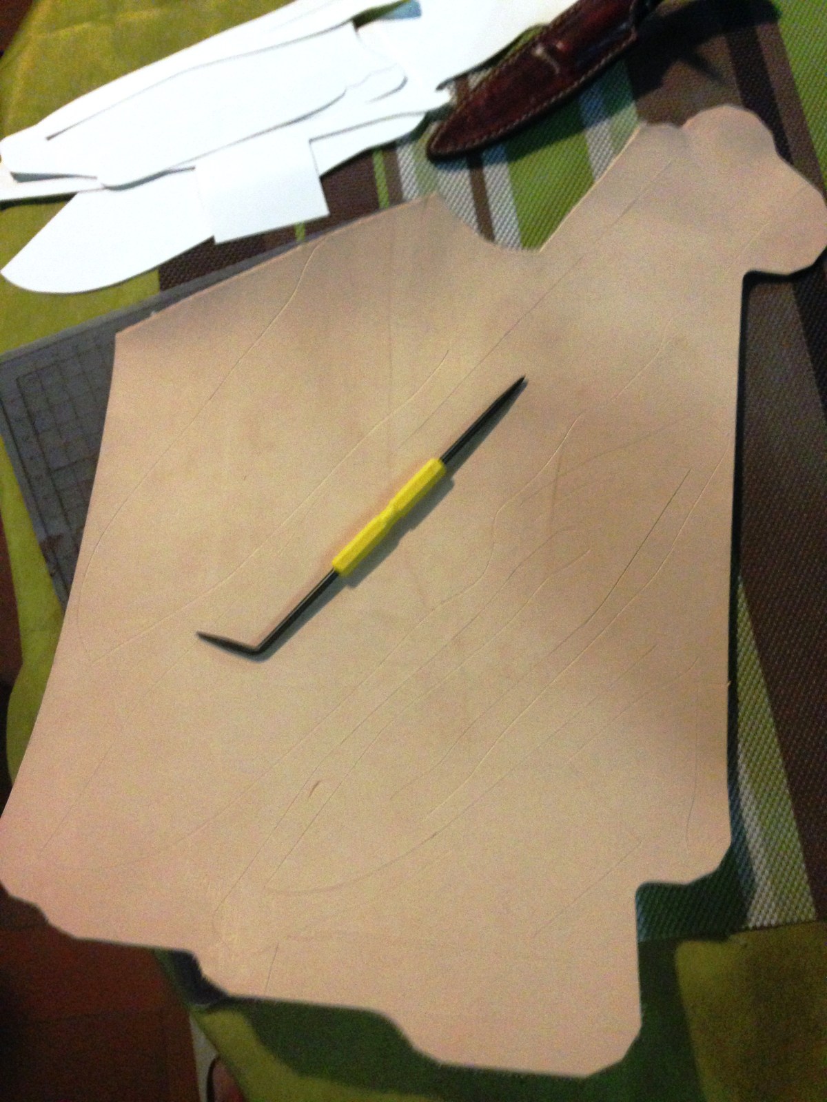 Dessin des pièces sur le cuir