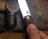 Étirage en vu du serpent Damas Avant… Après… Puis j’ai pu bosser sur quelques autres lames Celui du milieu sera plutôt mahoooooos comme pliant